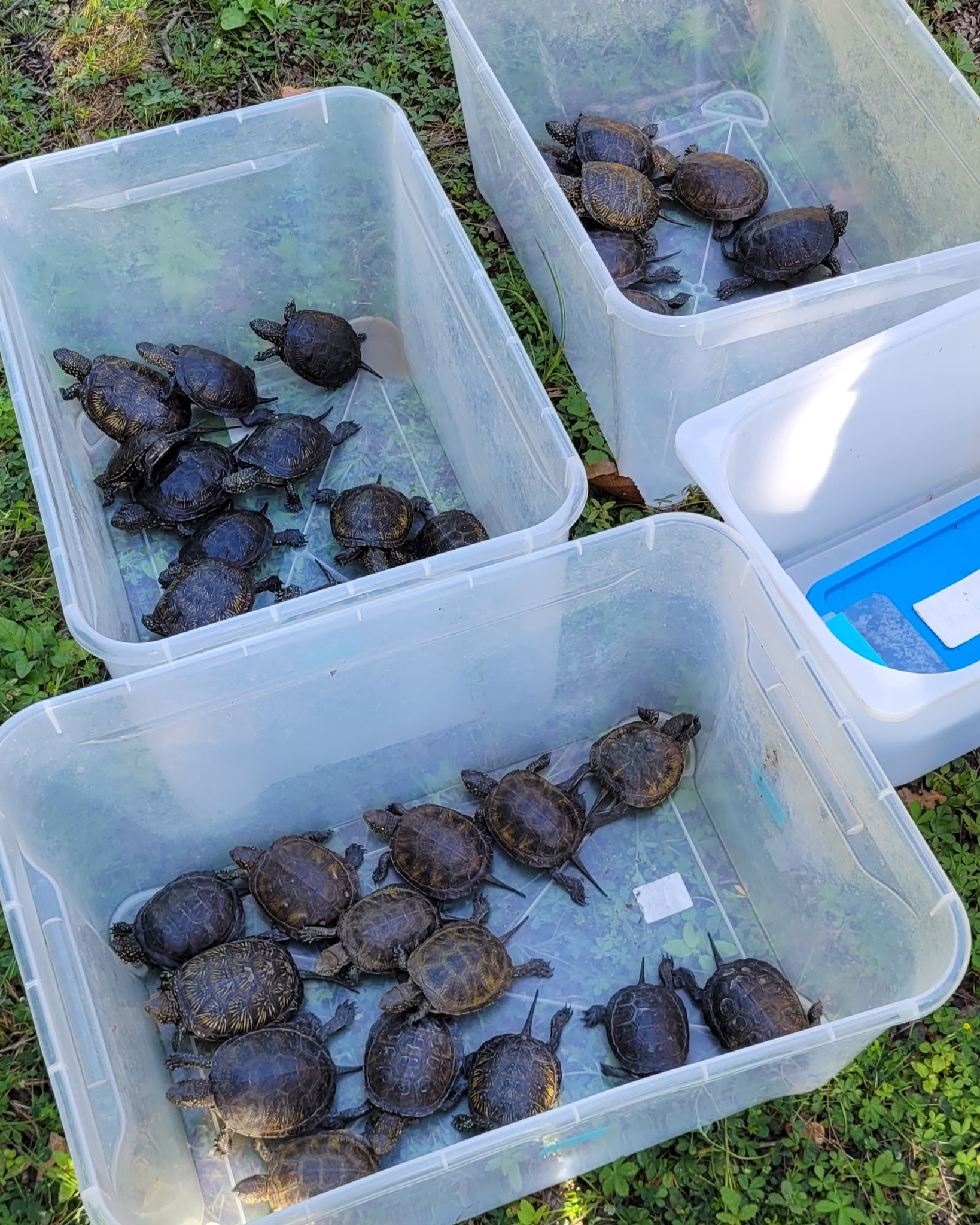 Nachdem die Sumpfschildkröten innerhalb von 3-4 Jahren in Zoos oder bei Züchtern auf ein Gewicht von 100 bis über 200 Gramm herangewachsen sind, sind sie bereit, wieder in die Wildnis entlassen