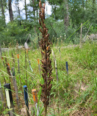 Da die Orchideen mittlerweile verblüht sind, habe ich im Orchideen-Biotop zwei Nachmittage damit verbracht, die Fruchtknoten der Pflanzen zu zählen, die wir im Frühjahr bereits vermessen hatten.