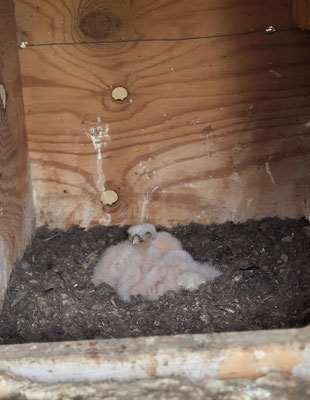 waren nun die ersten Turmfalkenküken geschlüpft und bettelten nach Futter.